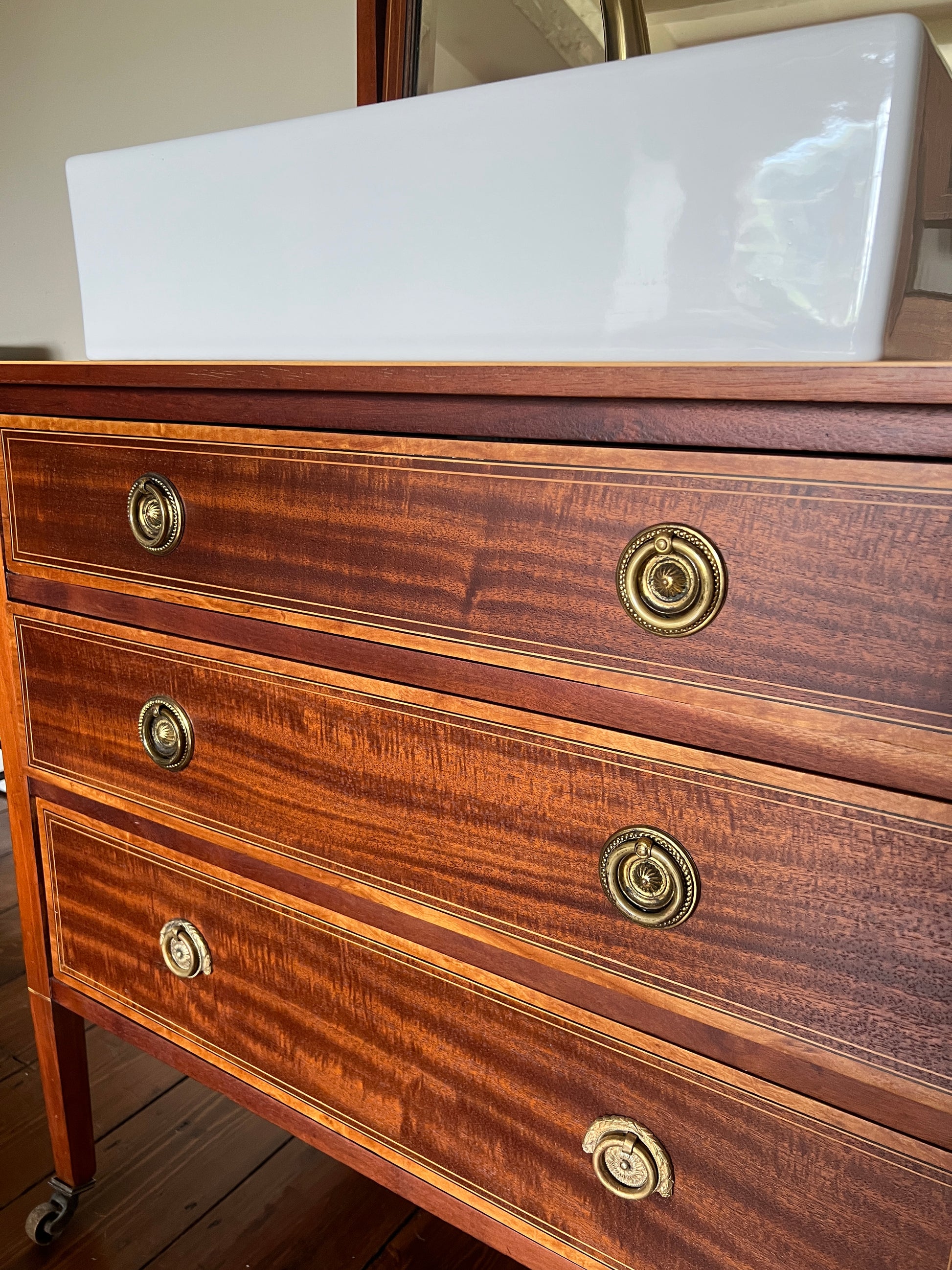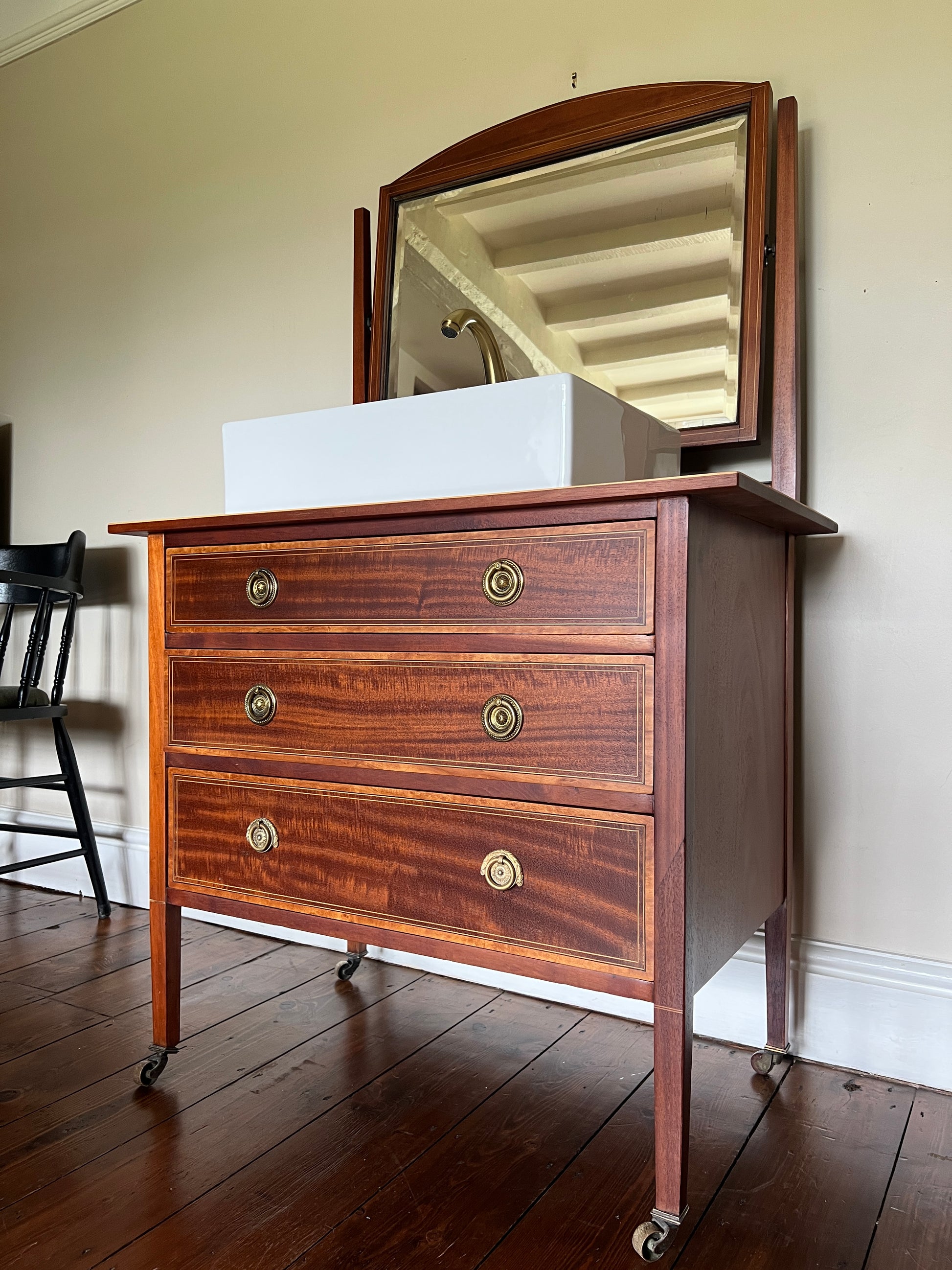 A fully restored and re purposed chest of drawers into a stunning vintage sink unit.