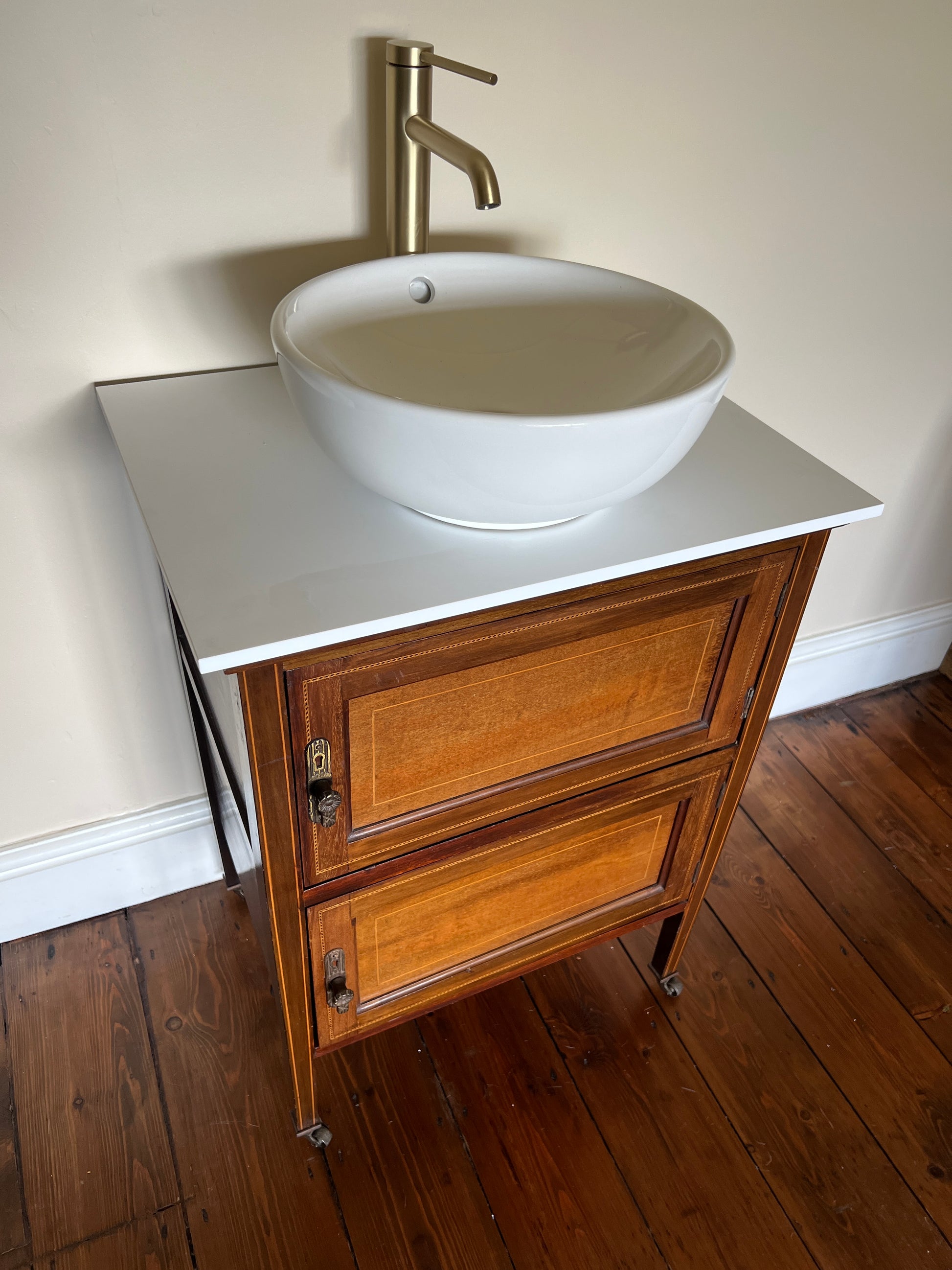 This is a truly 'one of a kind' vanity unit what would inject a wonderful vintage look and feel to just about any style of cloakroom or bathroom.